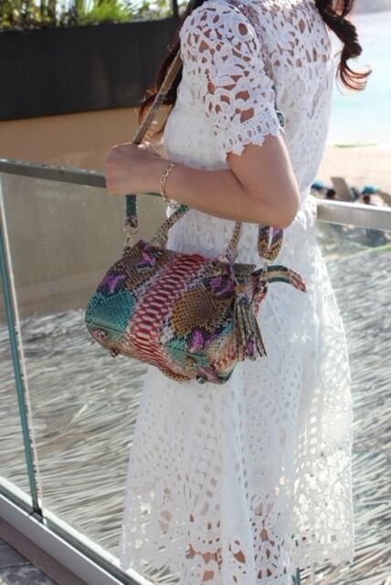 入荷後、検品の上再度袋詰め致しておりますが、蛇革本来の素材感や、1つ1つ手作業で革染をしている為、同じお色でも多少の誤差が生じます。