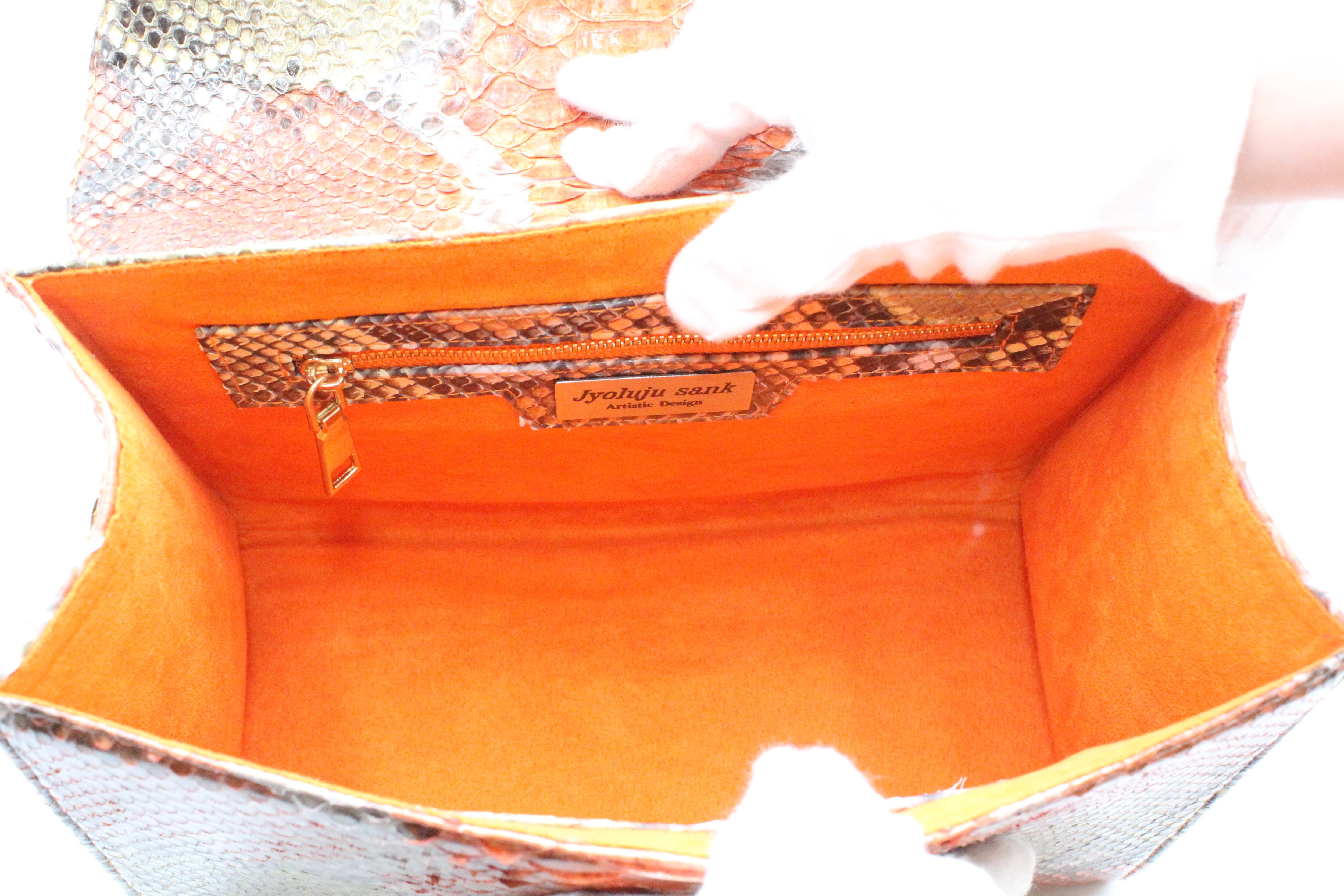 入荷後、検品の上再度袋詰め致しておりますが、蛇革本来の素材感や、1つ1つ手作業で革染をしている為、同じお色でも多少の誤差が生じます。