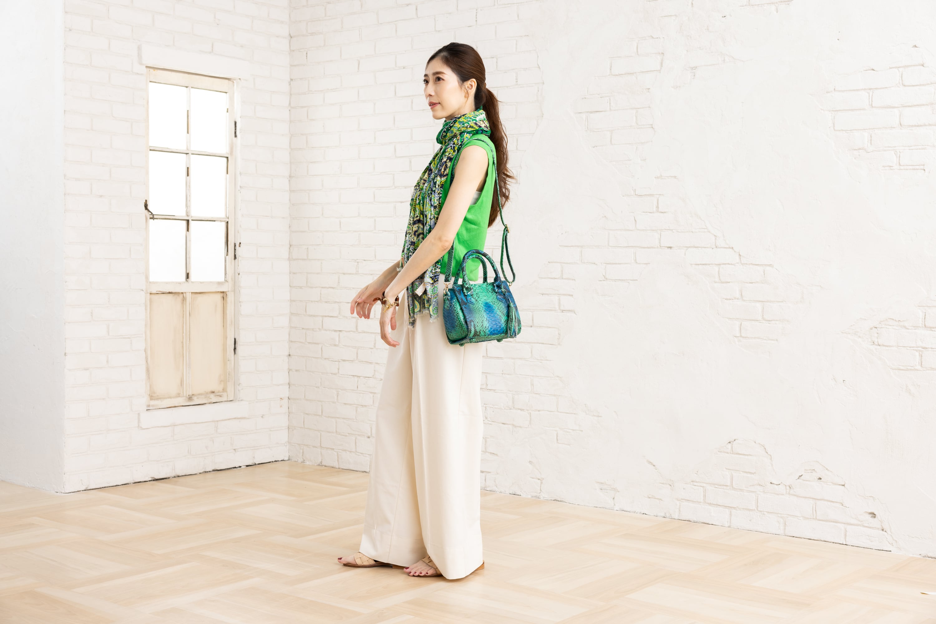 入荷後、検品の上再度袋詰め致しておりますが、蛇革本来の素材感や、1つ1つ手作業で革染をしている為、同じお色でも多少の誤差が生じます。