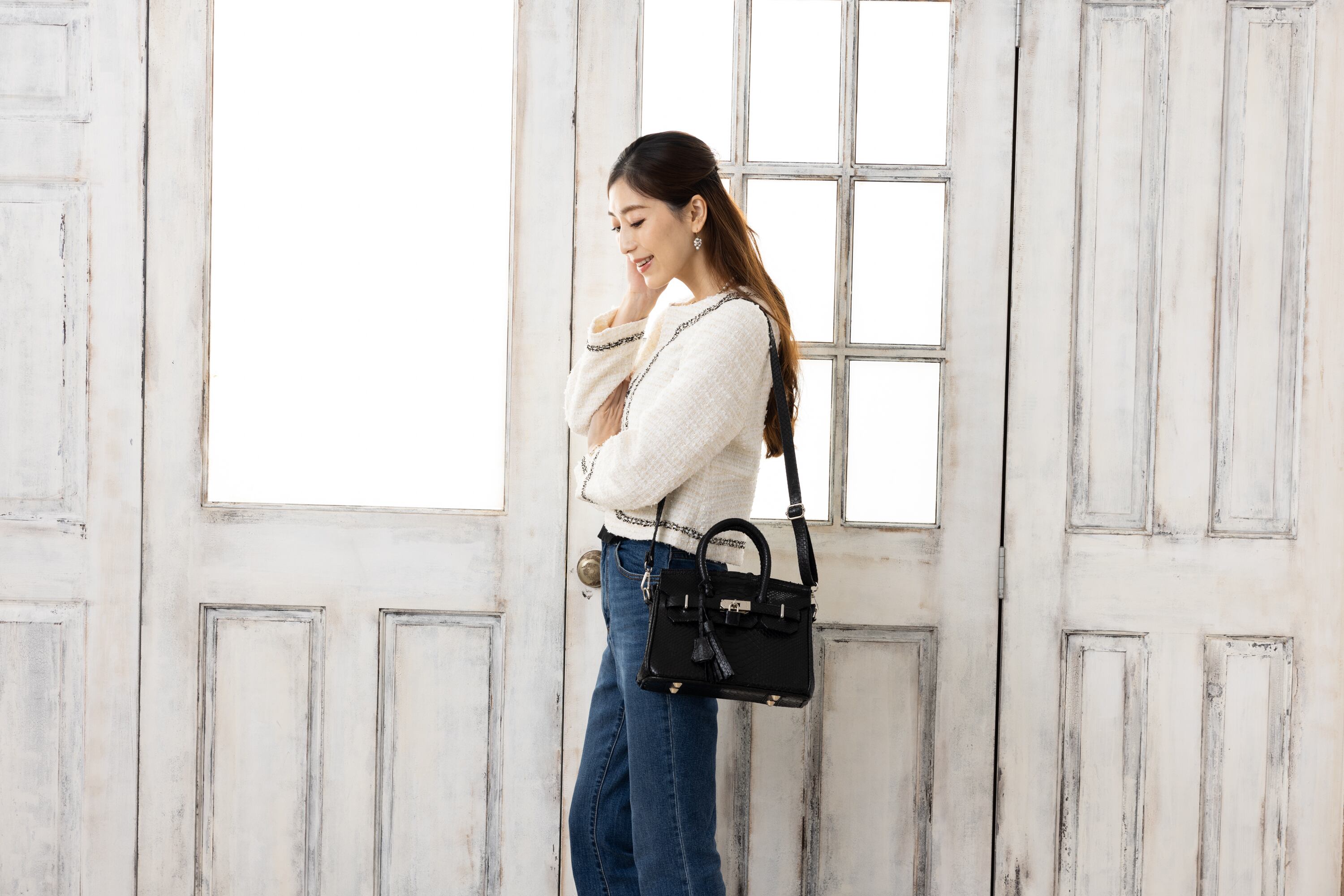入荷後、検品の上再度袋詰め致しておりますが、蛇革本来の素材感や、1つ1つ手作業で革染をしている為、同じお色でも多少の誤差が生じます。