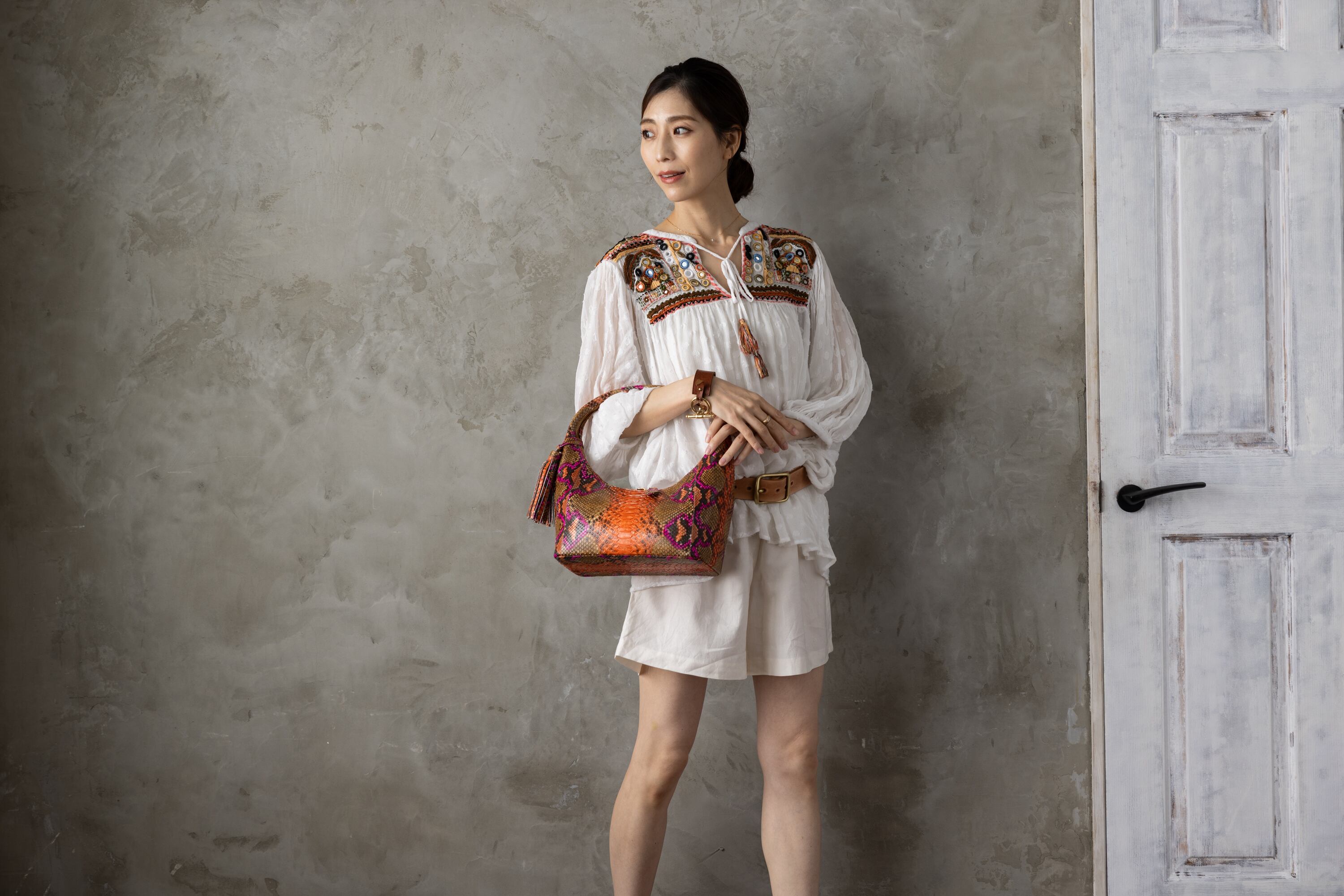 使いやすくスタイリッシュなSUPPLE。小脇に抱えるパイソン素材のフィットバッグは、大人の女性にぴったりのアイテムです。シンプルなデザインながらも、上質な素材感が高級感を漂わせます。多彩なカラーバリエーションから、お気に入りの一つを選んでみてはいかがでしょうか。