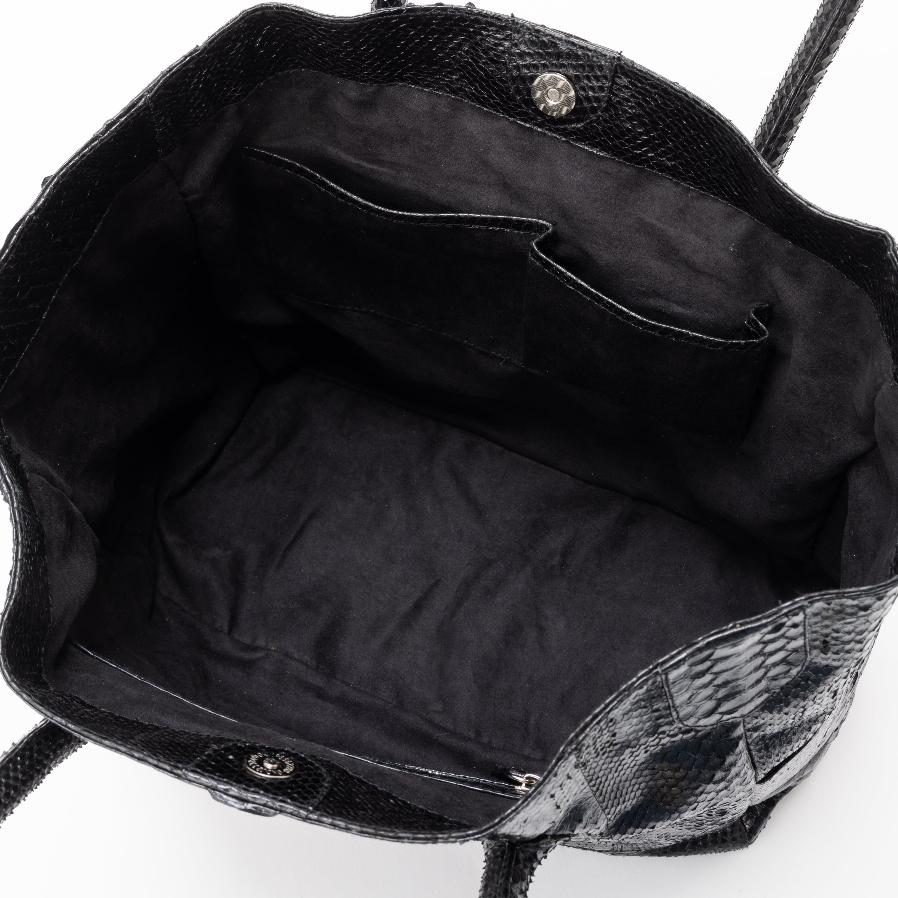 光沢のある革が上品な印象を演出し、パイソン本来の艶感を存分に楽しめます。