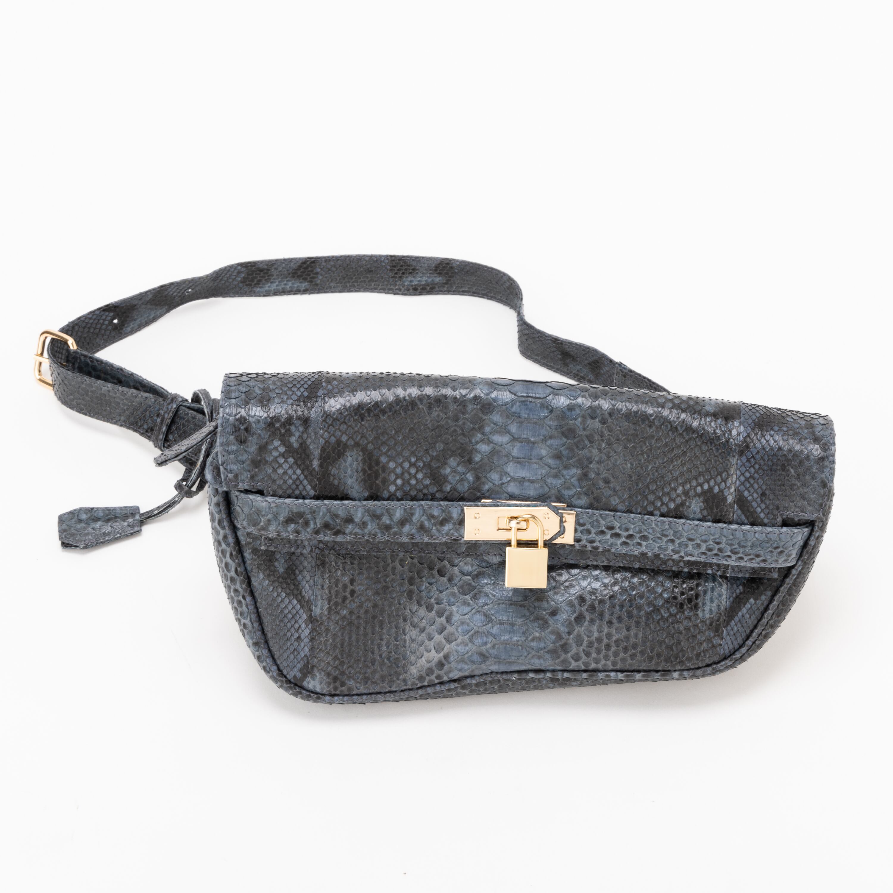 金具のアクセントが特徴的なパイソン素材のボディバッグです。
